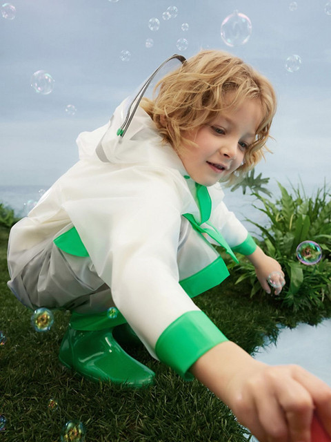 Frog Green Bordered Translucent Long Style Raincoat For Kids