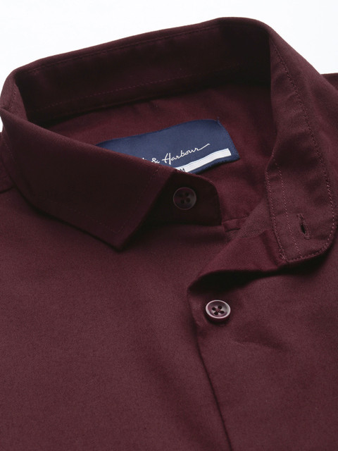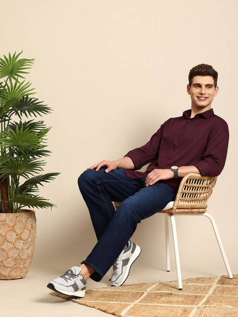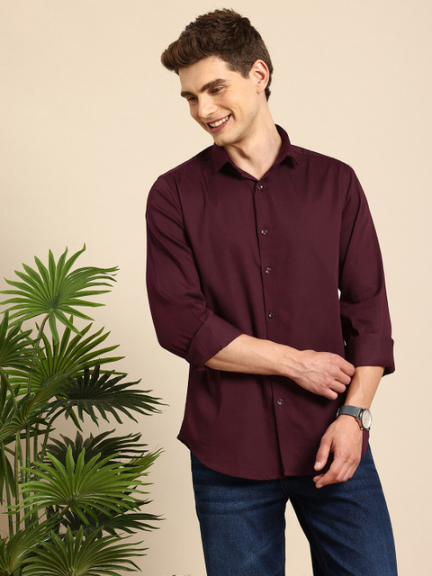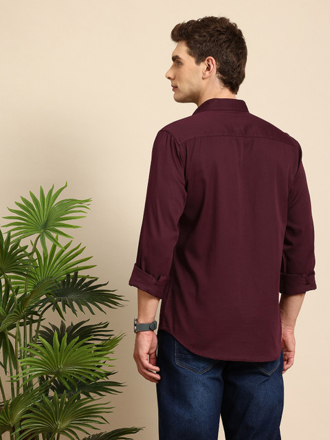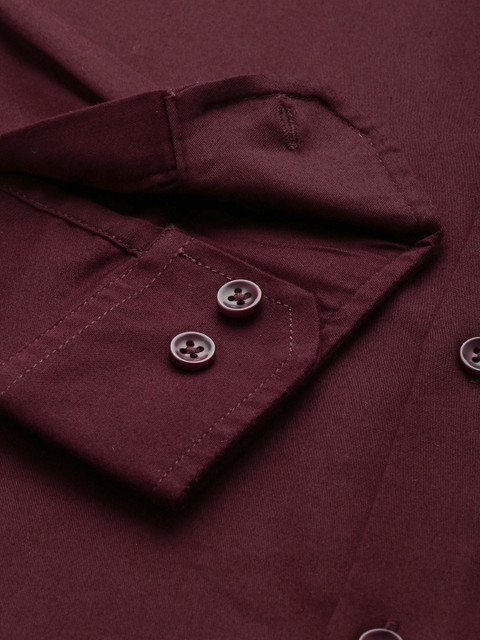 Burgundy solid opaque Casual shirt ,has a spread collar, button placket, long regular sleeves, curved hem