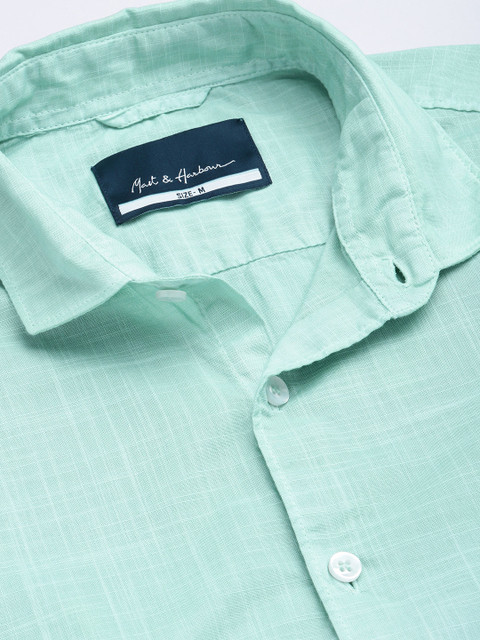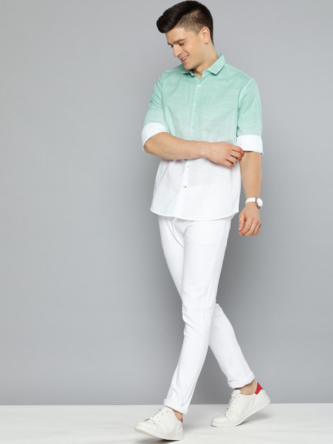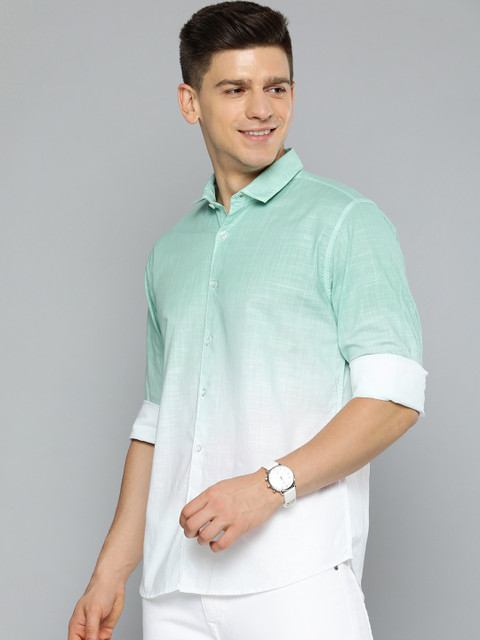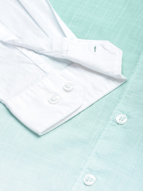 Turquiose Blue colourblocked opaque Casual shirt ,has a spread collar, button placket, long regular sleeves, curved hem