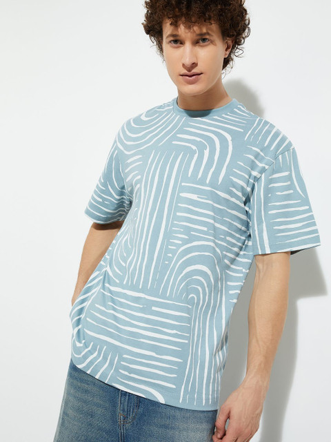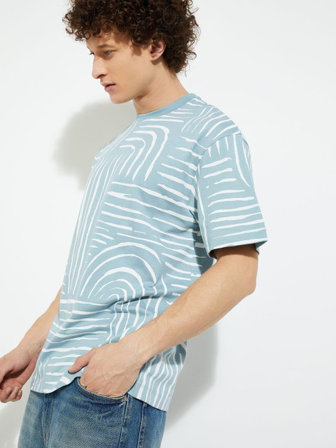 max Men Striped Round Neck Pure Cotton Relaxed Fit T-shirt