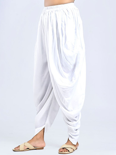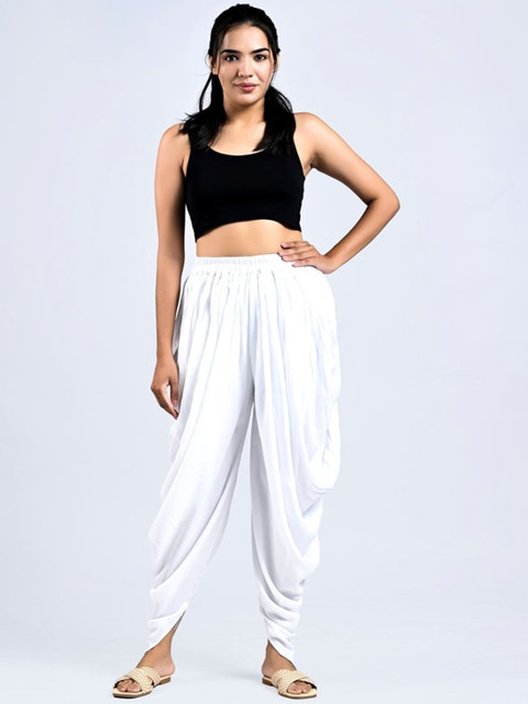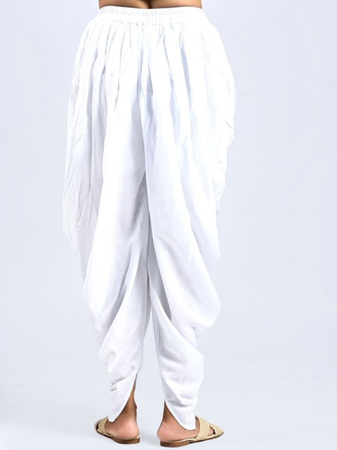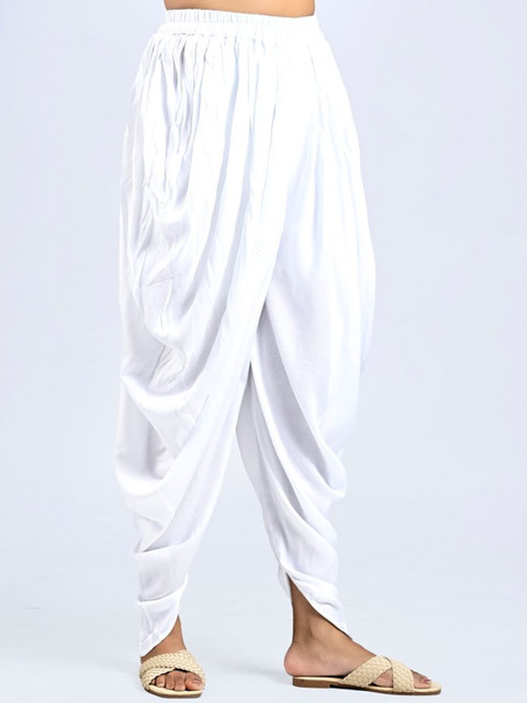 White solid regular-fit Dhoti Pant with pleats, has an elasticated waistband with slip-on closure