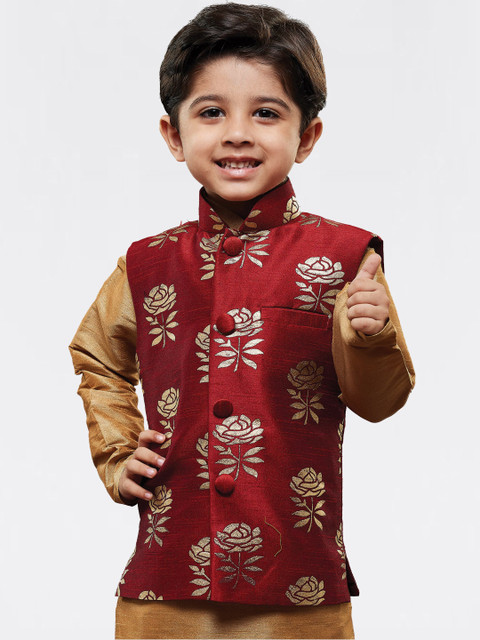 VASTRAMAY Boys Maroon Printed Woven Slim-Fit Nehru Jackets