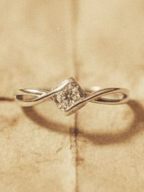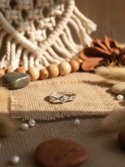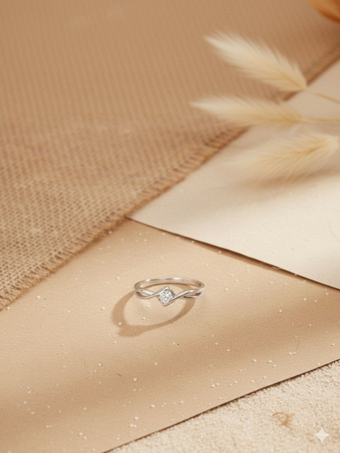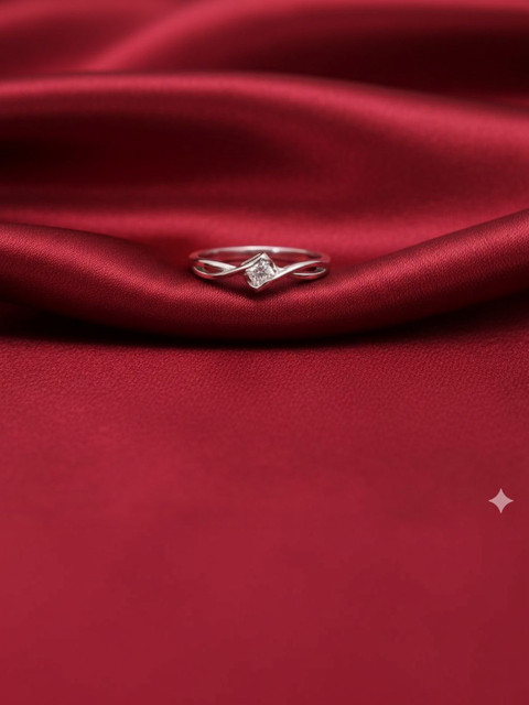 Rhodium plated adjustable finger ring, has white zirconia-studded details