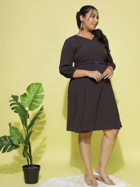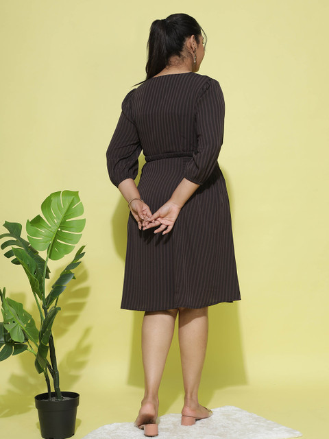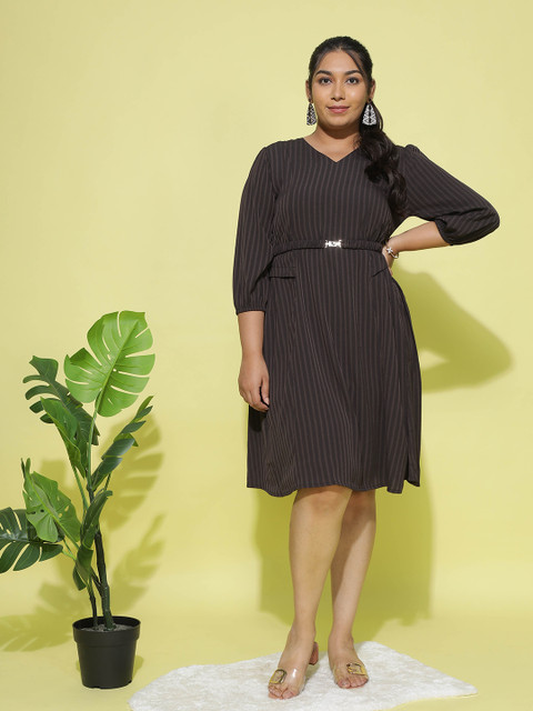 9shines Label Plus Size Striped Puff Sleeves A-Line Dress