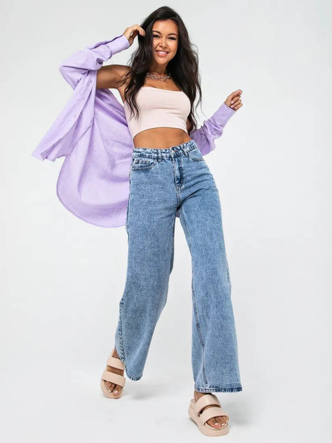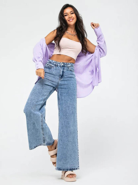 - Wide leg, high-rise