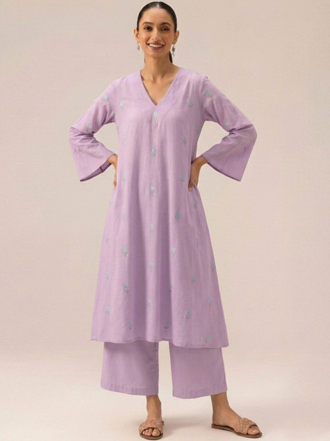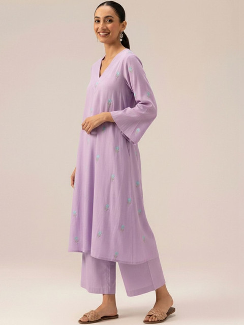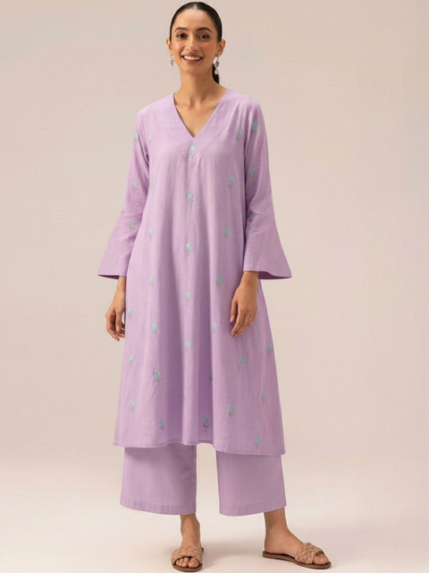 Lavender Embroidered Kurta with Palazzos