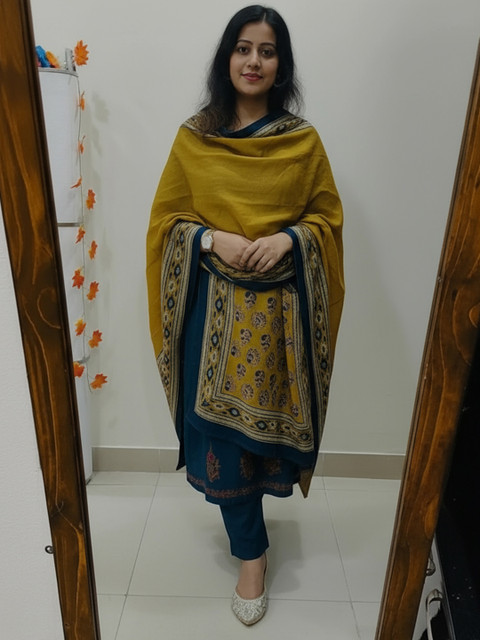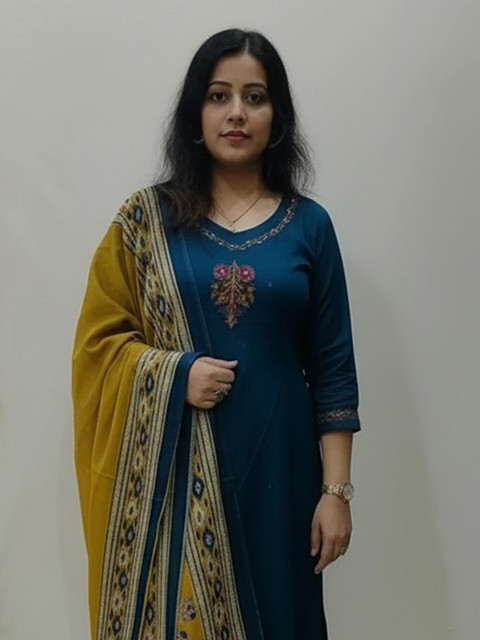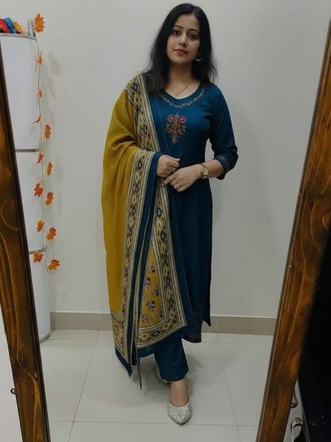 Teal embroidered Kurta with Trousers with dupatta