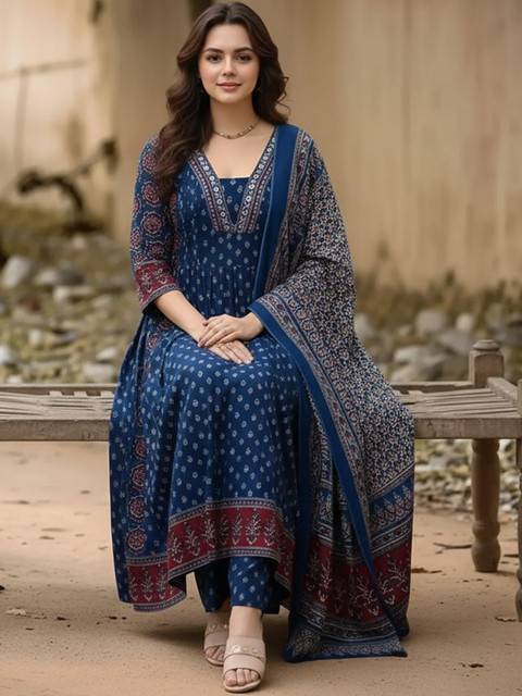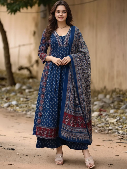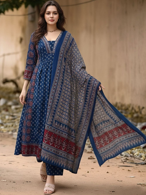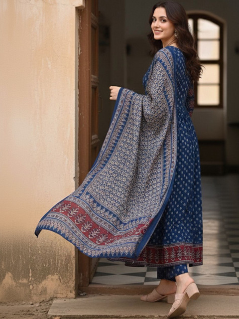 Blue printed Kurta with Trousers with dupatta