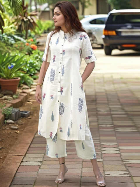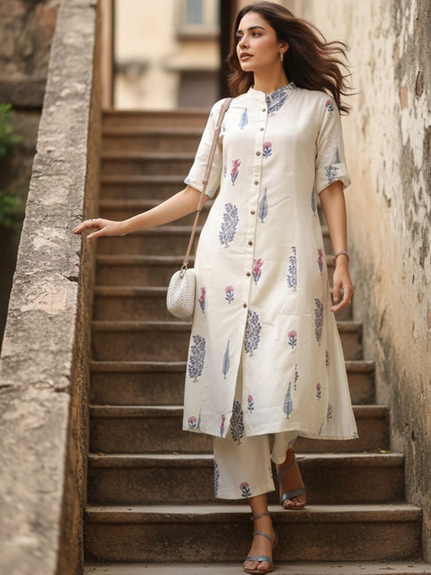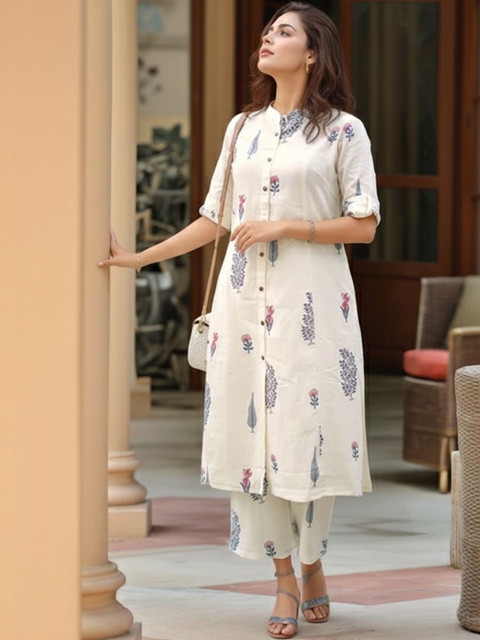 Off white printed Kurta with Trousers