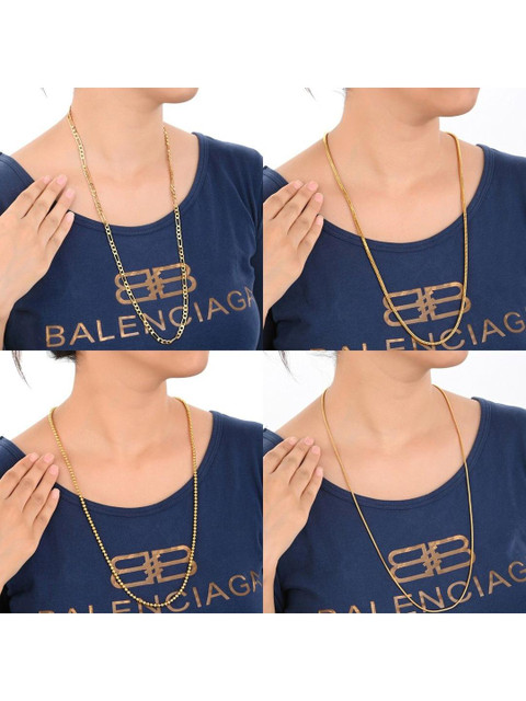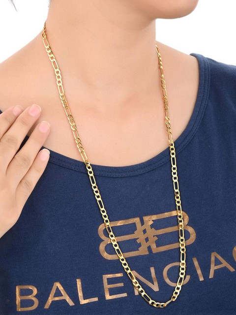 Chain Length is 28 inches. Check Size Chart in Last Image. Make your casual look with your favorite outfit more interesting with this beautiful chain from Aanya Centric. This chain is thick enough to get noticed. You can worn it even without pendant. Chain is highly durable apart from looking very stylish. It is laminated for better life of color and shine.