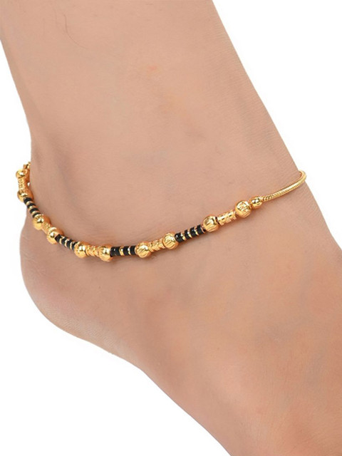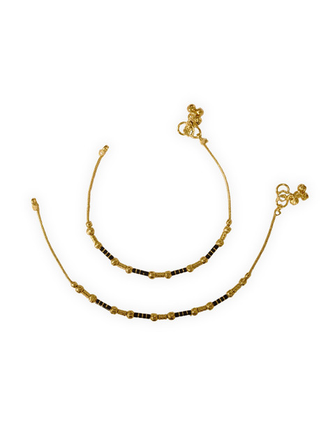 Gold-plated, black anklets, has s-hook closure