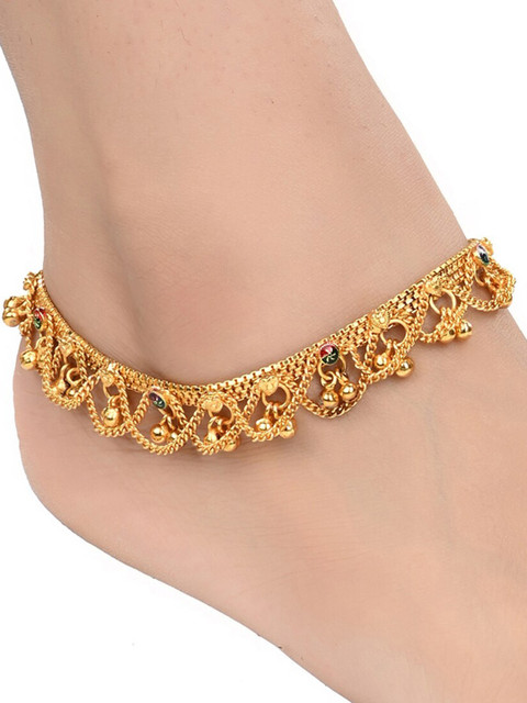 Gold-plated anklets, has ghungroo beads and secured with S-hook closure