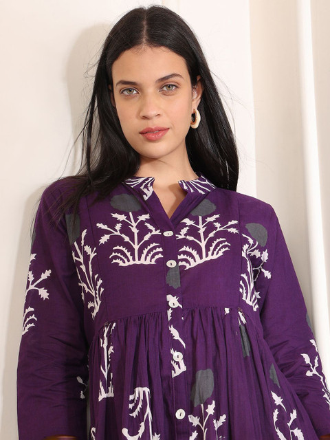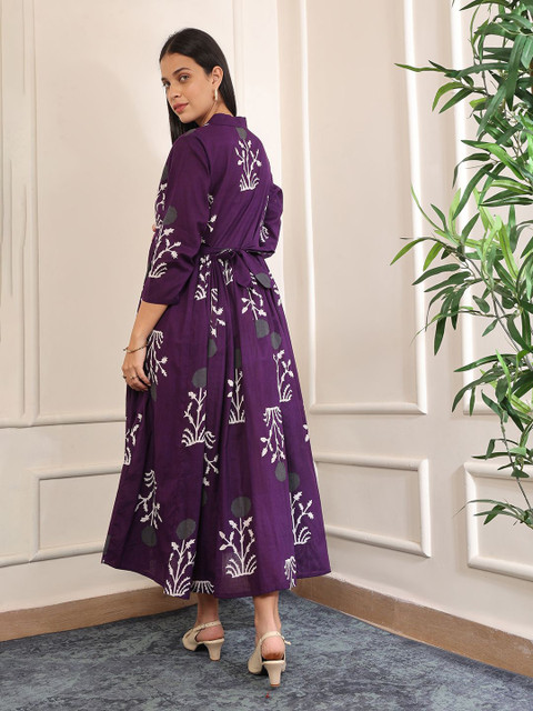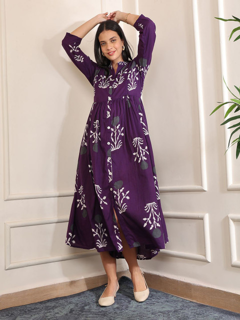 - Purple floral print fit & flare dress