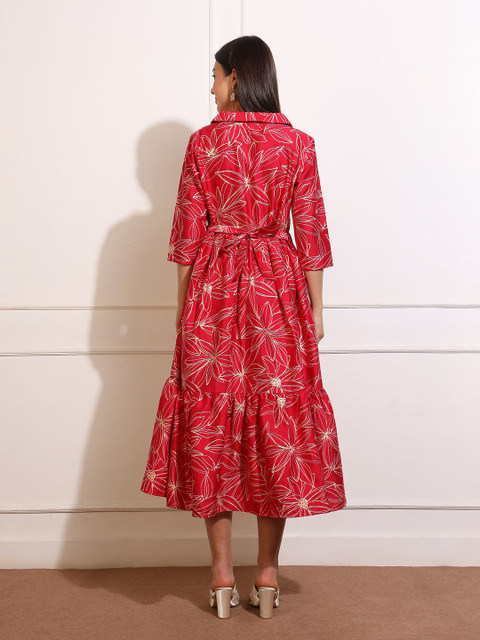 - Pink floral print shirt dress