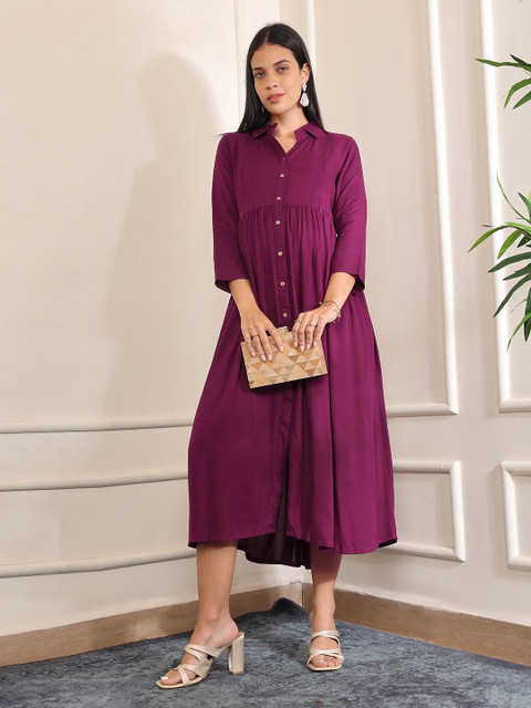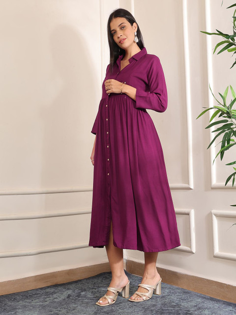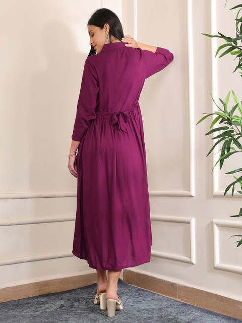 - Purple solid fit & flare dress