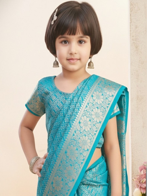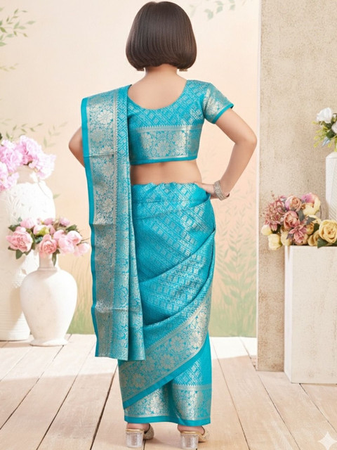 • Sea green and gold-toned kanjeevaram saree