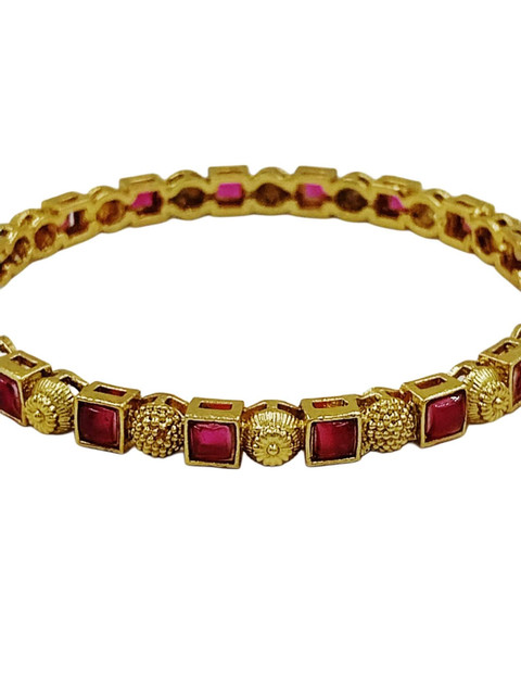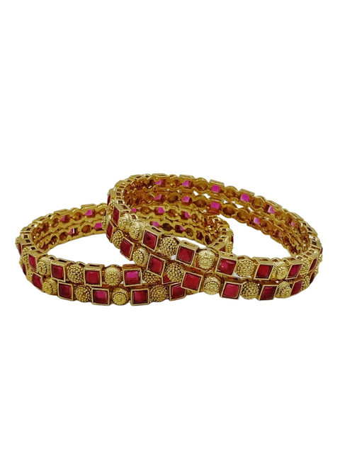 Set of 4 gold-plated bangles, each has pink kundan-studded details, secured with slip-on closure