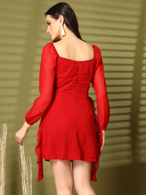 - Red solid bodycon dress