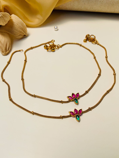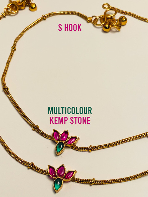 Gold Plated piece of 2 Set of Anklets and beaded secured with S Hook closure
