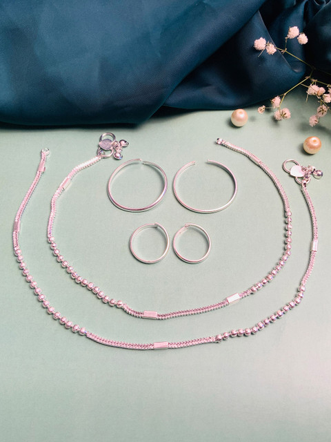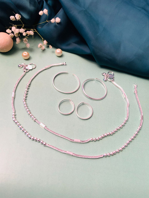 Set of 6 silver plated anklets, big thumb rings & toe rings, artificial stones and beads