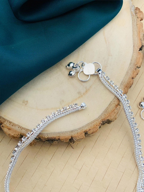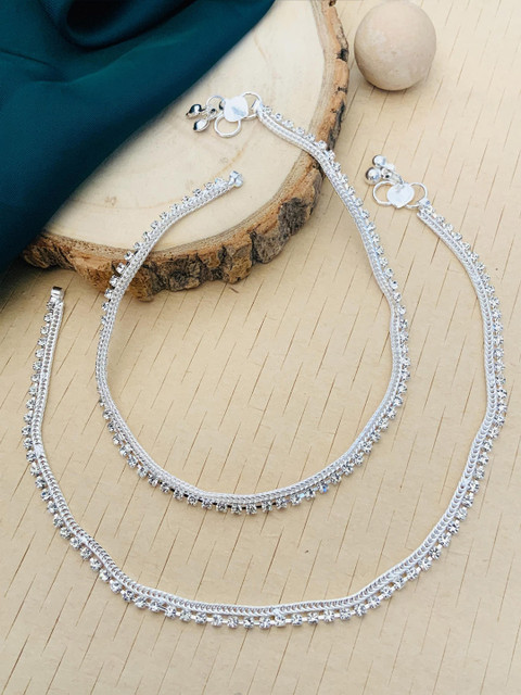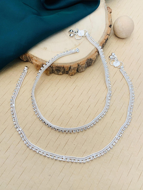 Silver-plated artificial stones and beads Studded anklet s-hook closure