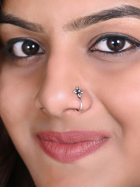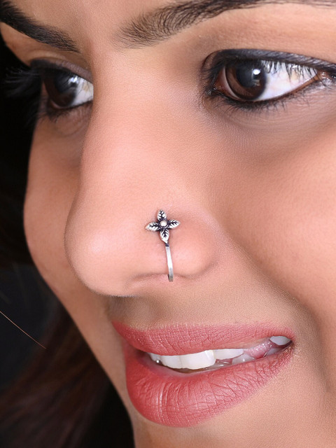 Silver-toned stud nosepin clip-on closure