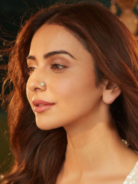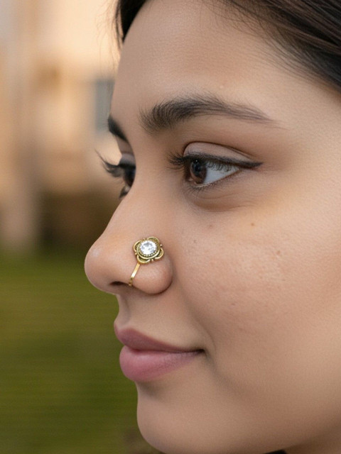 AccessHer Gold-Plated Artificial Stones and Beads Stud Nosepin