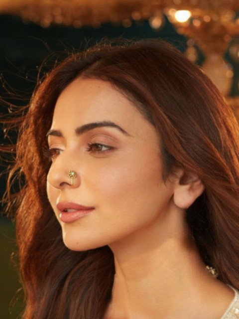 AccessHer Gold-Plated Artificial Stones and Beads Stud Nosepin