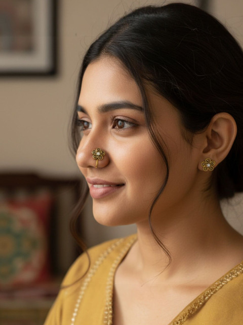 Gold-Toned Spiral Floral Clip-On Nose Pin