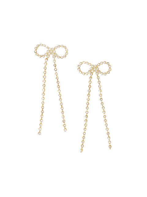 Coquette but make it glam. A playful addition to your jewellery box, these drop earrings boat a bow design adorned with round diamante stones. The Post and Back lock offers both security and ease of wear, providing a comfortable fit while keeping the earrings securely in place