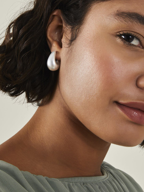 A modern twist on a classic pearl earring, this dazzling pair boasts a sculptural curve with an opulent pearl finish. The Post and Back lock offers both security and ease of wear, providing a comfortable fit while keeping the earrings securely in place