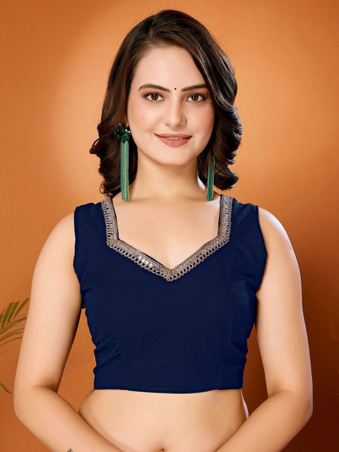 The blouse worn by the model might be for modelling purpose only. Check the image of the blouse piece to understand how the actual blouse piece looks like.