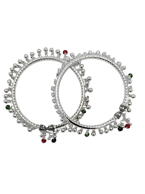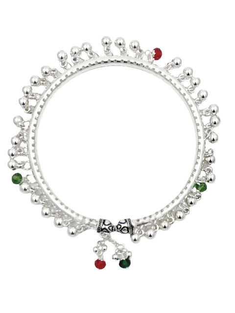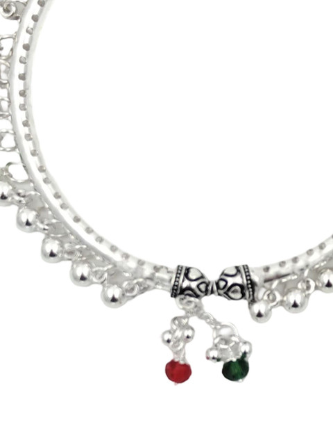 Silver-toned, green and red anklet, silver-plated, has crystals beaded details
