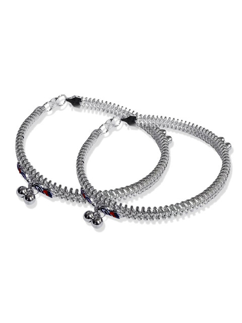 Adhvik Silver-Plated Ghungroo Leg Payal Kada Anklet