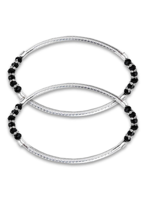 Stainless Steel silver-tone and black anklet, crystals beaded details