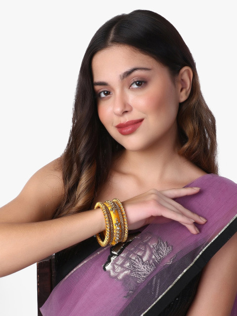 Set of 4 gold-plated bangle set, has Stone-studded details, secured with a slip-on closure