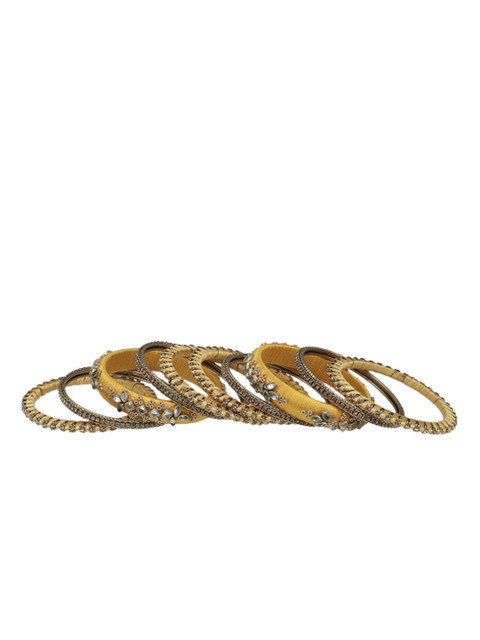 Set of 4 gold-plated bangle set, has Stone-studded Velvet Silk Thread details, secured with a slip-on closure