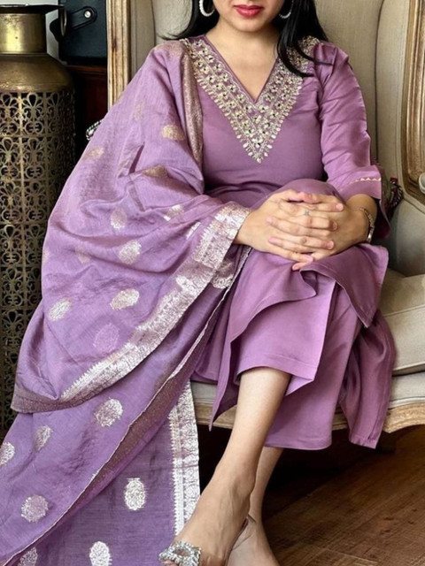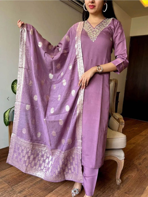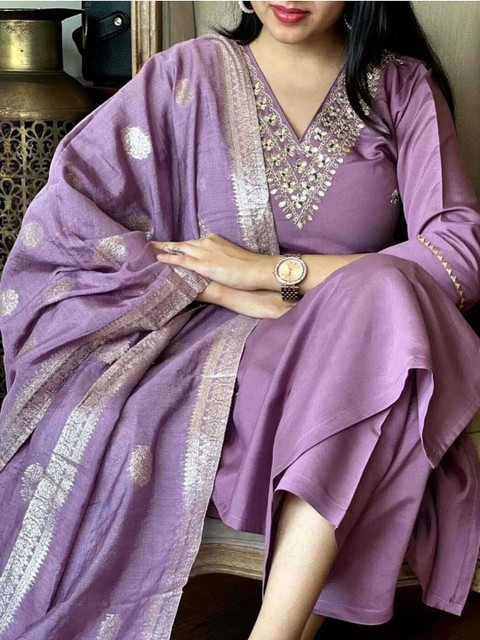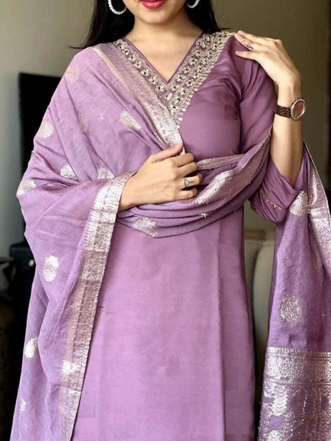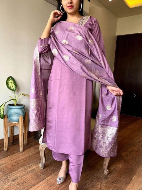 Purple solid Kurta with Trousers with dupatta