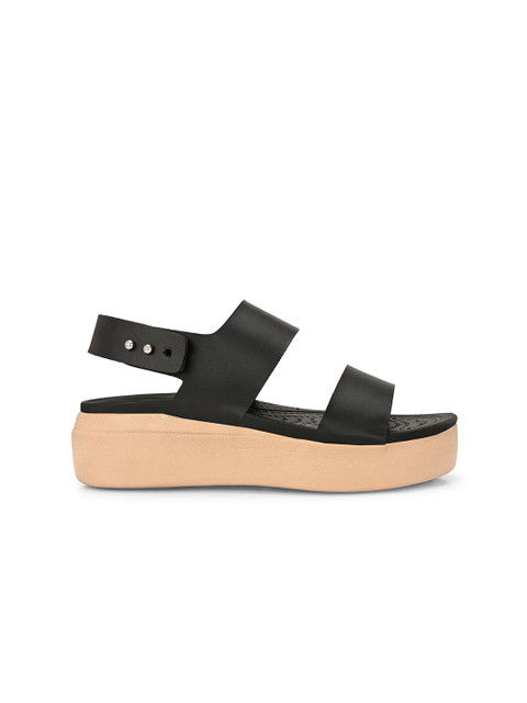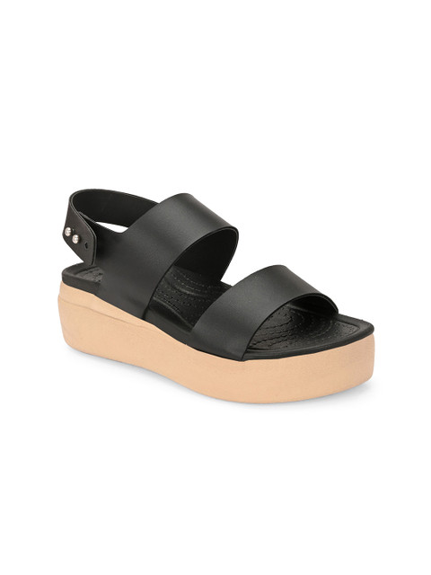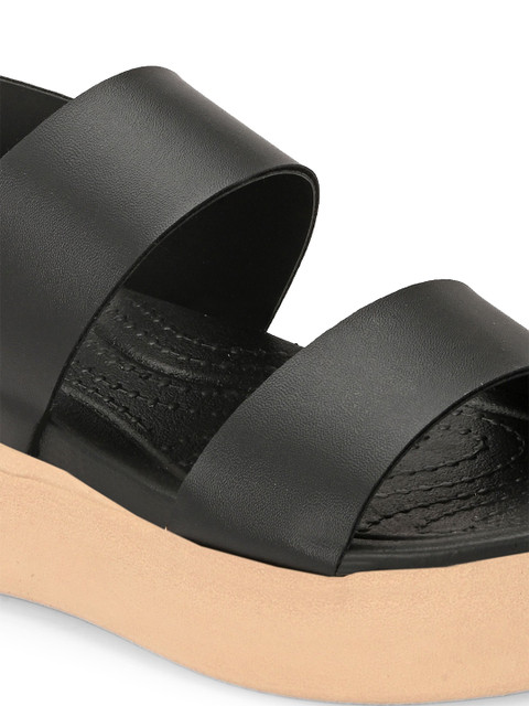 A pair of black solid clogs