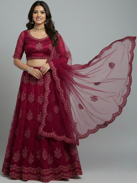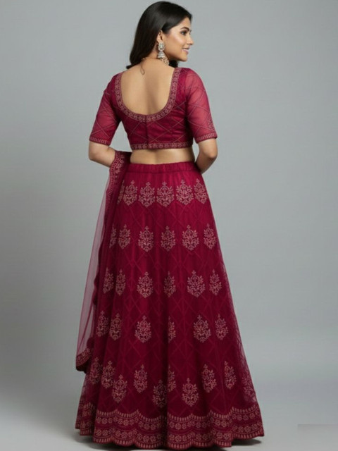 Maroon embroidered lehenga choli with dupatta, thread work