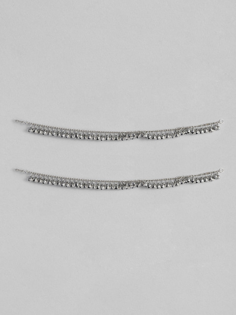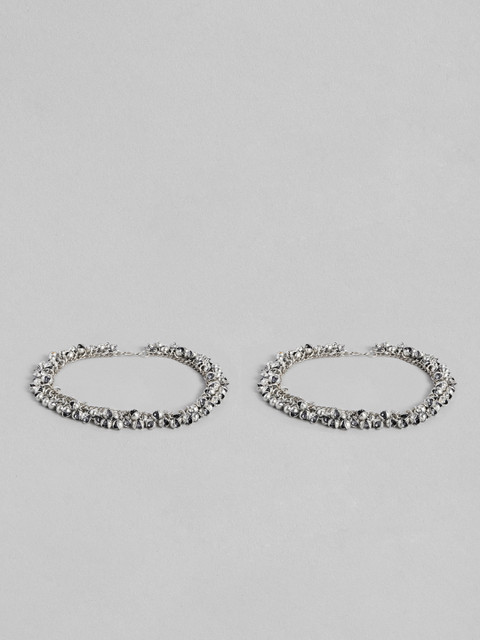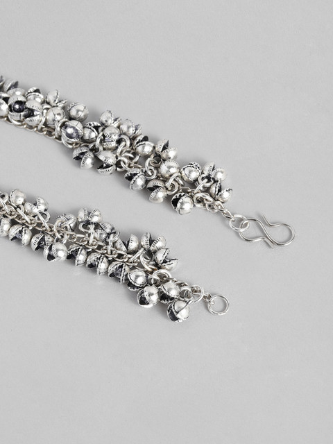 Silver-plated oxidised anklet, has s-hook closure