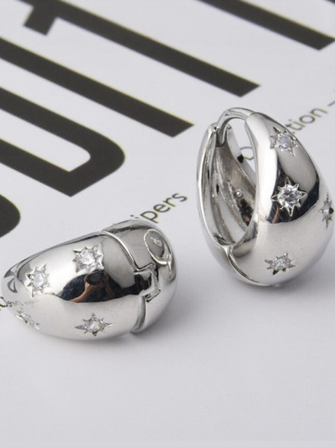 1 review for AKISON JEWELS Silver Plated Circular Stone Studded Hoop Earrings
