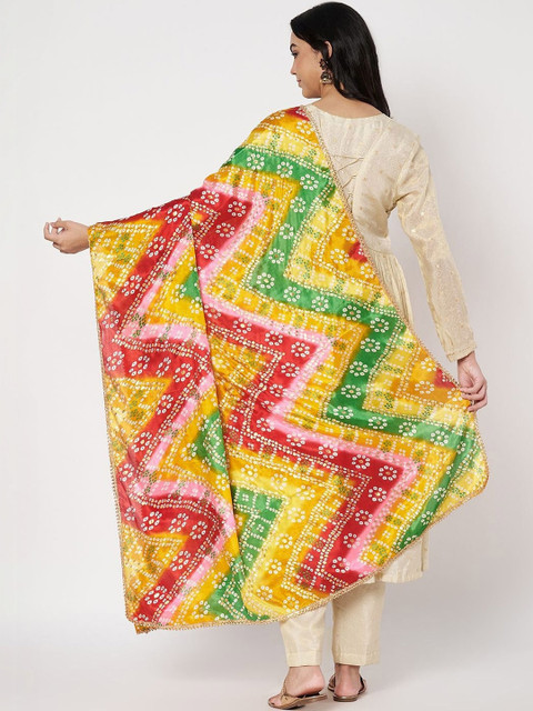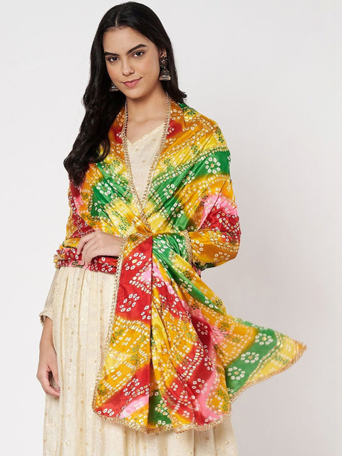 Yellow and green leheriya printed dupatta has leheriya technique,, printed border