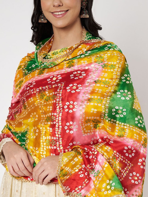 AKSHADEEP Printed Art Silk Leheriya Dupatta