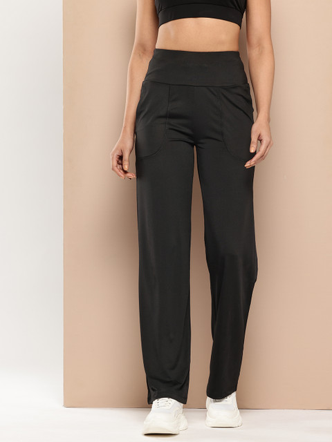 - Black solid track pants