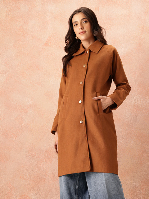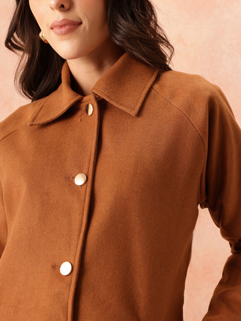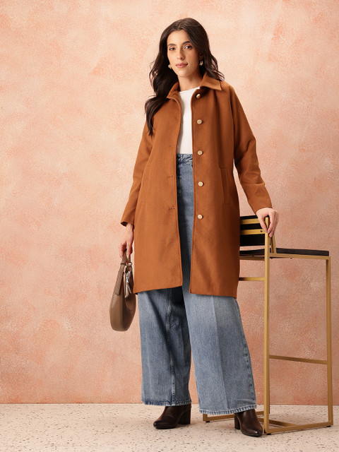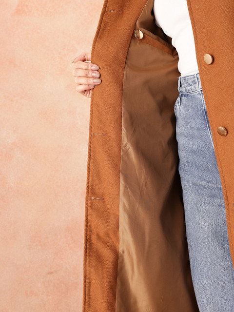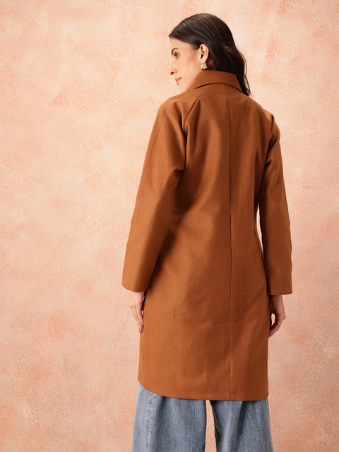 Brown chevron self-design regular fit overcoat