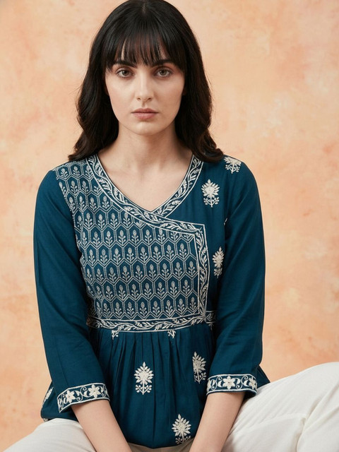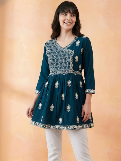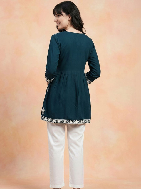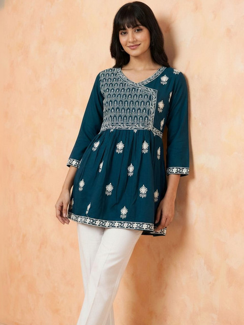 Style NoteRedefine your wardrobe with this versatile top for women, a perfect blend of modern aesthetics and ethnic charm. This women top is designed for the fashion-forward woman who values both comfort and style.How to Style:For a Corporate Look: Tuck this white shirt women or shirt for women into high-waisted trousers. Add a blazer to transform it into the ultimate office wear women ensemble.For a Casual Day Out: Pair your favorite crop top women or tank top with distressed denim and sneakers for a laid-back vibe.The Indo-Western Fusion: For those who love kurtis, style our short kurti for women or short kurta with silver oxidized jewelry and cigarette pants. These short kurtis women love are perfect for creating an effortless women kurti look.Party Ready: Opt for a black top or peplum tops women paired with a sequin skirt and heels. Whether its tops women party wear or a chic corset top, youll be the center of attention.From the minimalist appeal of a white top to the bold statement of black tops women, our collection of shirts, tunics women, and tops ensures you stay on-trend every season. Upgrade your women shirts collection and discover why the short kurti tops women trend is taking over this year.