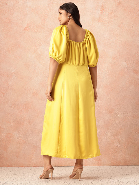 • Yellow solid fit & flare dress