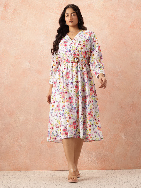 3 reviews for all about you Plus Size Floral Print Belted Midi Dress