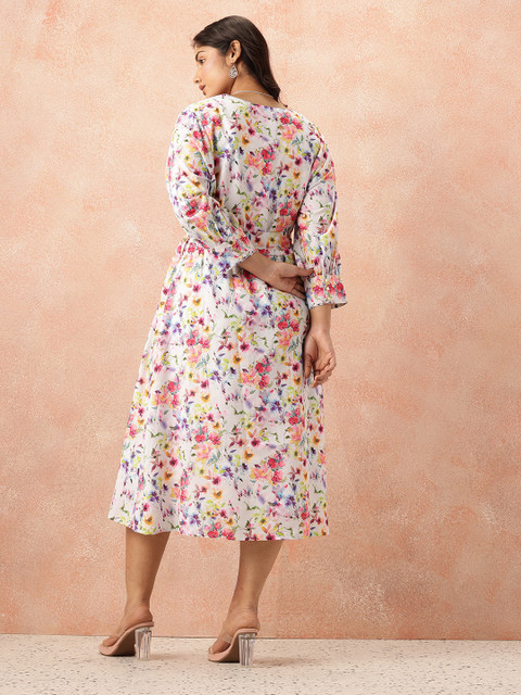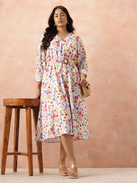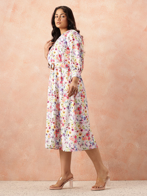 all about you Plus Size Floral Print Belted Midi Dress